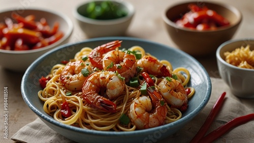 "Delicious Prawns Noodles: Fresh Seafood and Savory Noodles"