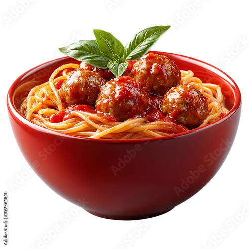 Delicious Spaghetti and Meatballs in a Red Bowl
