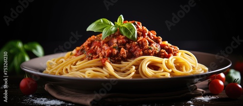 Delicious Spaghetti with Savory Meat and Fresh Tomato Sauce on a Plate
