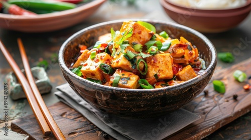 Delicious Spicy Tofu with Fresh Vegetables and Herbs