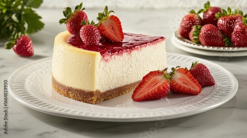 Delicious Strawberry Cheesecake with Fresh Strawberries on Plate