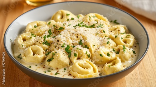 Delicious Tortellini Pasta Dish with Creamy Sauce and Parmesan Cheese
