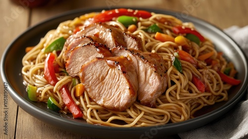 Delicious Yakisoba Noodles Served on Ceramic Plate