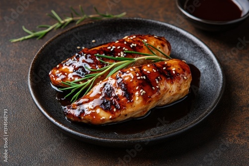 Deliciously Grilled Chicken Breasts Placed on a Dark Ceramic Plate