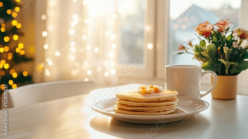 Delightful pancake breakfast at home cozy kitchen food photography morning light heartwarming concept for food lovers