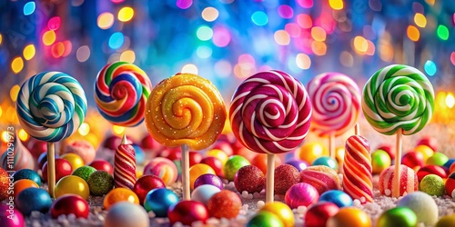 Delightful Tilt-Shift Photography of Colorful Sweet Lollipops in a Candy Wonderland, Perfect for Celebrating Joy and Sweets in a Dreamy Miniature World