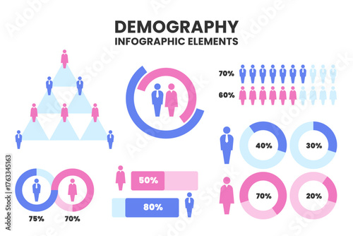 Demography Infographic Element Set with Gender Icons and Chart Shapes