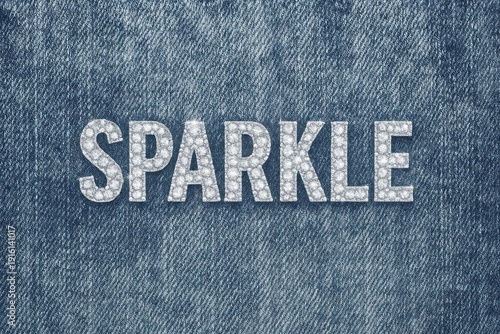 Denim texture with sparkling text.