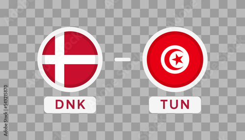 Denmark vs Tunisia Match Design Element. Flags Icons isolated on transparent background. Football Championship Competition Infographics. Announcement, Game Score, Scoreboard Template. Vector
