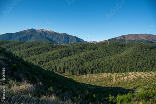 Dense forest covering the hills and mountains around St Arnaud Nelson Lakes district