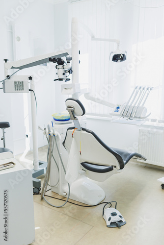 Dental microscope in a modern dental office. Modern dental treatment.