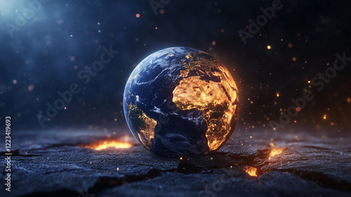 Depict a barren, drought-affected earth, where the ground is cracked and lifeless, reflecting the global struggle against decreasing water resources and the urgent need for climate