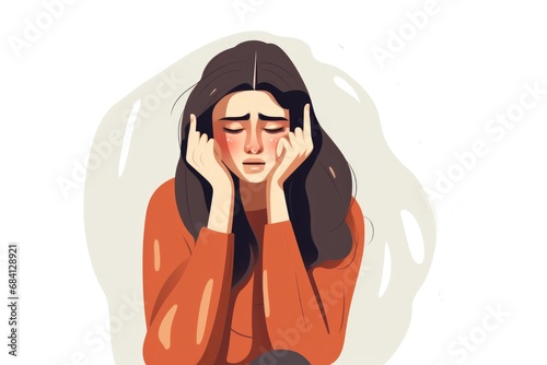 depression woman sit on white background