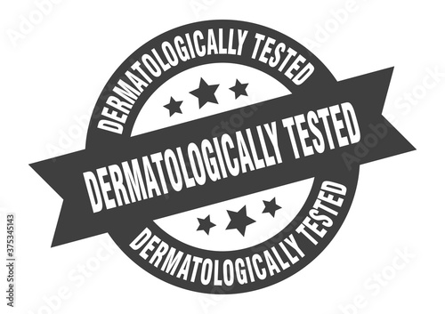 dermatologically tested sign. round ribbon sticker. isolated tag
