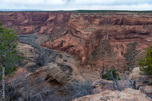 Desert landscape, view of red eroded rocks, Canyon de Chelly National Monument, Arizona