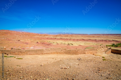 Desert landscape with Atlas Mountains near Kasbah Ait Ben Haddou, Morocco
