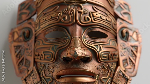 Design a ceremonial mask from the Copper Age, incorporating intricate copper designs and symbols , super realistic