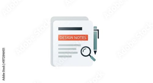 Design Notes Document with Magnifying Glass and Pen.