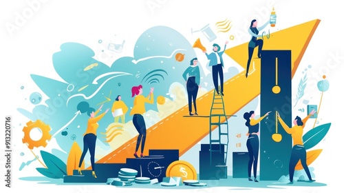 Design of business people working together creating an upward trend graph, showing a positive trend or increasing sales figures they work cooperatively to achieve a common goal