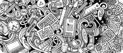 Designer hand drawn doodle banner. Cartoon detailed flyer.