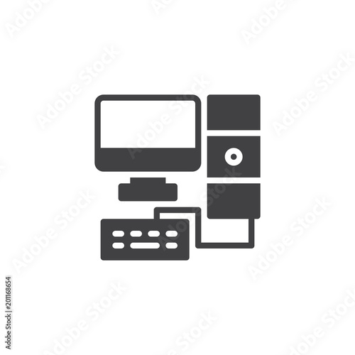 Desktop computer vector icon. filled flat sign for mobile concept and web design. Computer monitor and keyboard simple solid icon. PC symbol, logo illustration. Pixel perfect vector graphics