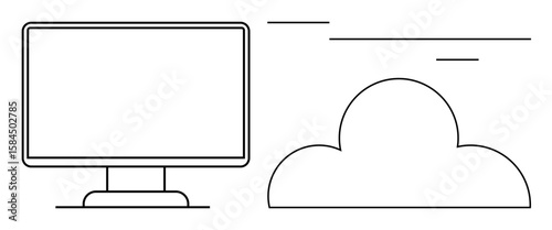 Desktop monitor and cloud outline conceptually demonstrating digital services, cloud storage, and online technology. Ideal for concepts in innovation, IT, remote access, cloud computing, networking
