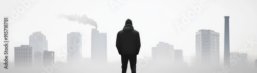 Despair of Poverty Man Looking at Empty Pockets in Bleak Cityscape