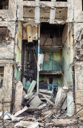 Destroyed house after a rocket attack in Kyiv, Ukraine