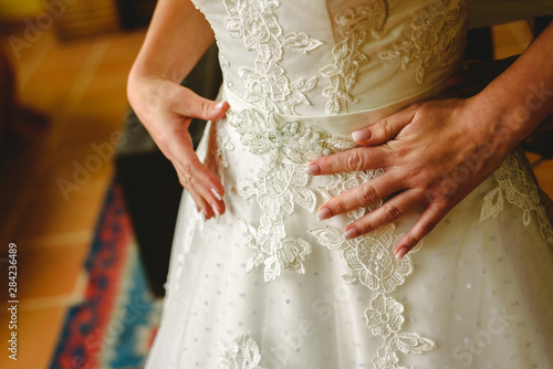Detail of the texture of a white wedding dress.