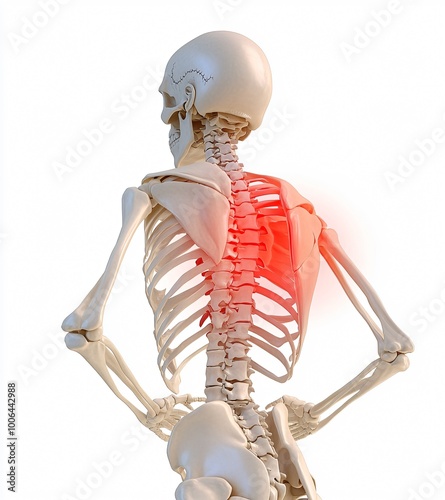 Detailed 3D Anatomical Skeleton Model with Highlighted Back and Spine