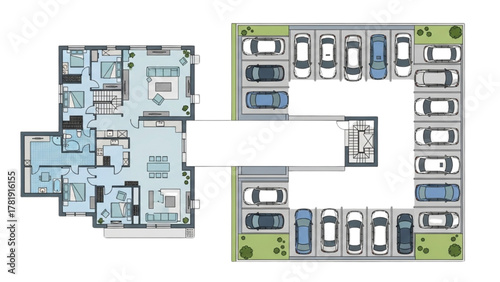 Detailed Architectural Plan Residential Layout with Parking and Building Design