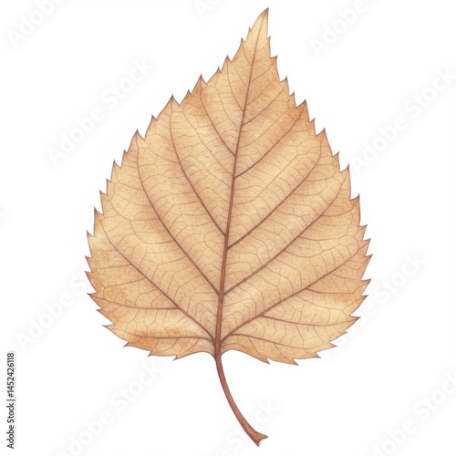 Detailed Beige and Brown Dried Leaf on White Background
