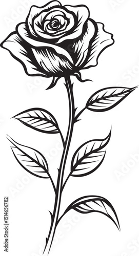 Detailed Black Rose Vector Art Emblem for Branding and Design Modern Black Rose Flower Elegant Vector Logo with Petal Lines