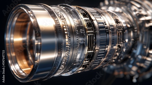 Detailed cinematic closeup of rocket turbine blade with visible heat stress marks
