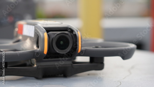 Detailed close-up image of a modern drone camera, showcasing advanced technology and design. Ideal for tech, innovation, and aerial photography themes.
