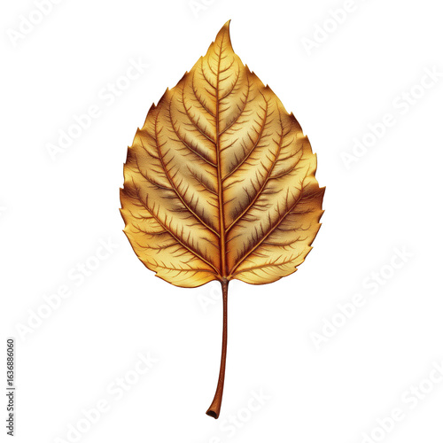 Detailed Close-Up of a Golden Autumn Leaf against Transparent background