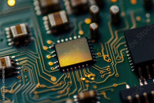 Detailed Close-Up of a Microchip on a Circuit Board