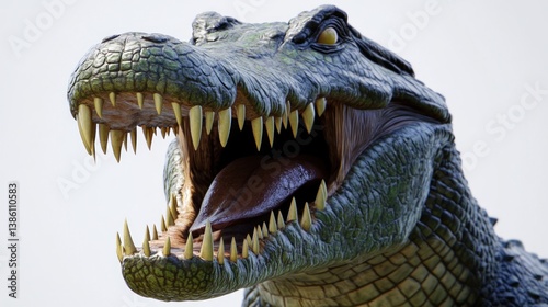 Detailed CloseUp of a Reptile with Open Mouth Showing Sharp Teeth and Textured Skin for Wildl