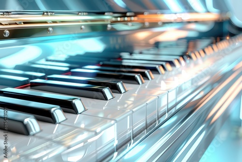 Detailed close-up of glossy piano keys reflecting light, showcasing the elegance and craftsmanship of a classic musical instrument.