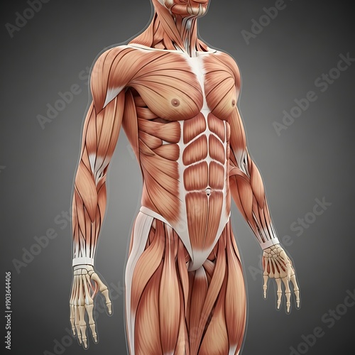 Detailed Human Anatomy Muscular System Illustration.