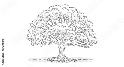 Detailed Illustration of a Large Tree with Dense Foliage.