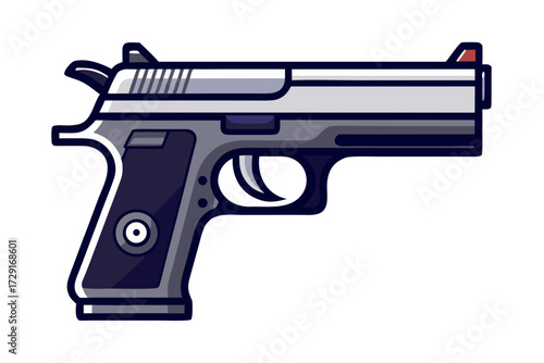 Detailed illustration of a modern handgun featuring sleek design, metallic finish, and ergonomic grip, showcasing firearm craftsmanship and precision engineering concepts