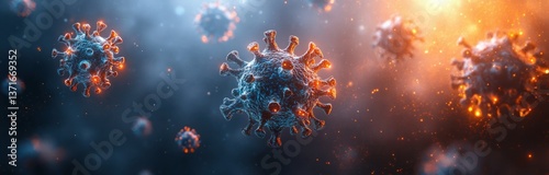 Detailed Illustration of COVID-19 Virus Structure Futuristic Art Sci-Fi Bioluminescent Elements