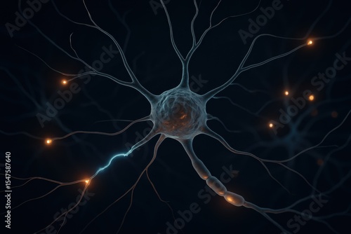 Detailed Illustration of Neural Network with Glowing Synapses and Neurons in Dark Background