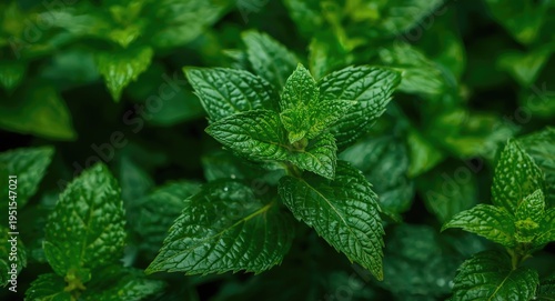 Detailed image of fresh Mentha piperita herb leaves outdoors