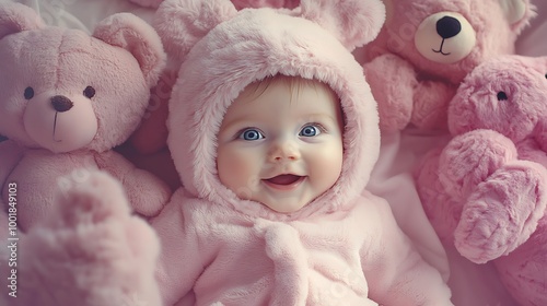 Detailed imagery created through the innovative use of generative AI showcasing an endearing baby girl with luminous blue eyes