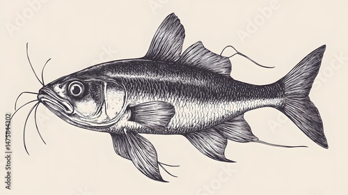 Detailed ink drawing of a fish profile view.