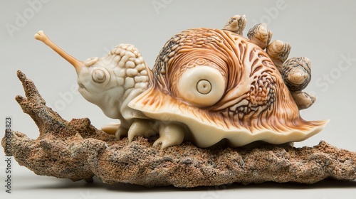 Detailed Ivory Sculpture of a Snail Shell