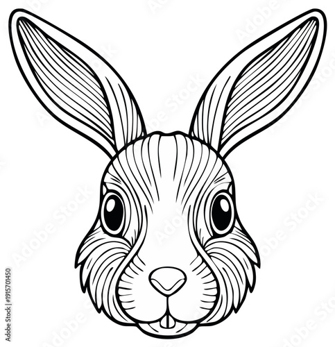 Detailed Line Art Illustration of a Rabbit's Face with Striking Eyes and Long Ears