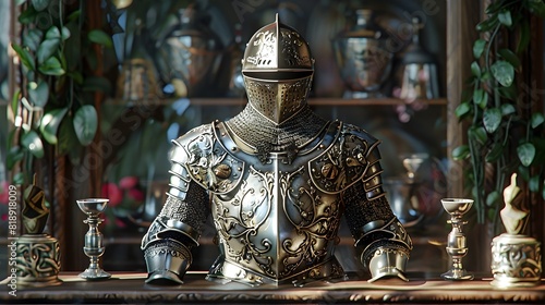 Detailed Ornate Knight s Armor on Display in Classical Still Life Composition with Dramatic Lighting and High Clarity